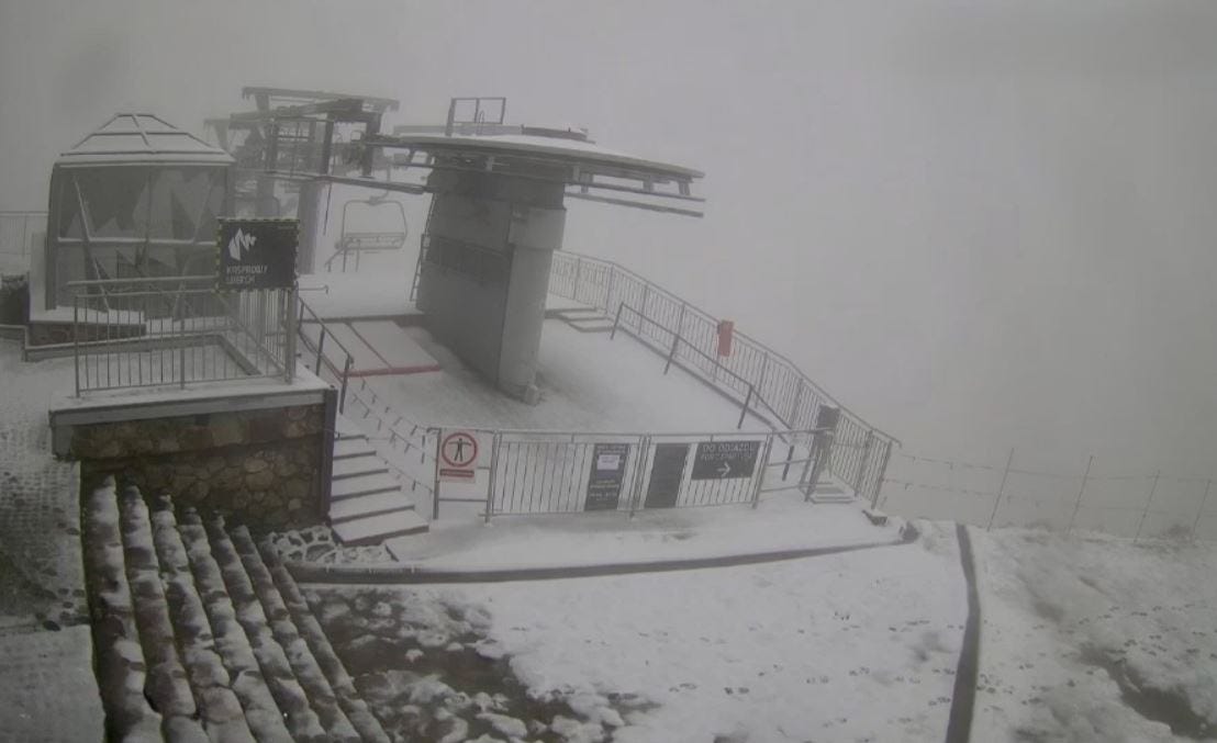Thermometers tanked to -3C (27F) on Kasprowy Wierch with continuous snowfall from Saturday night through Sunday. Flakes can technically strike the highest Polish peaks in any month, but August events are rare, the last coming in 2010.