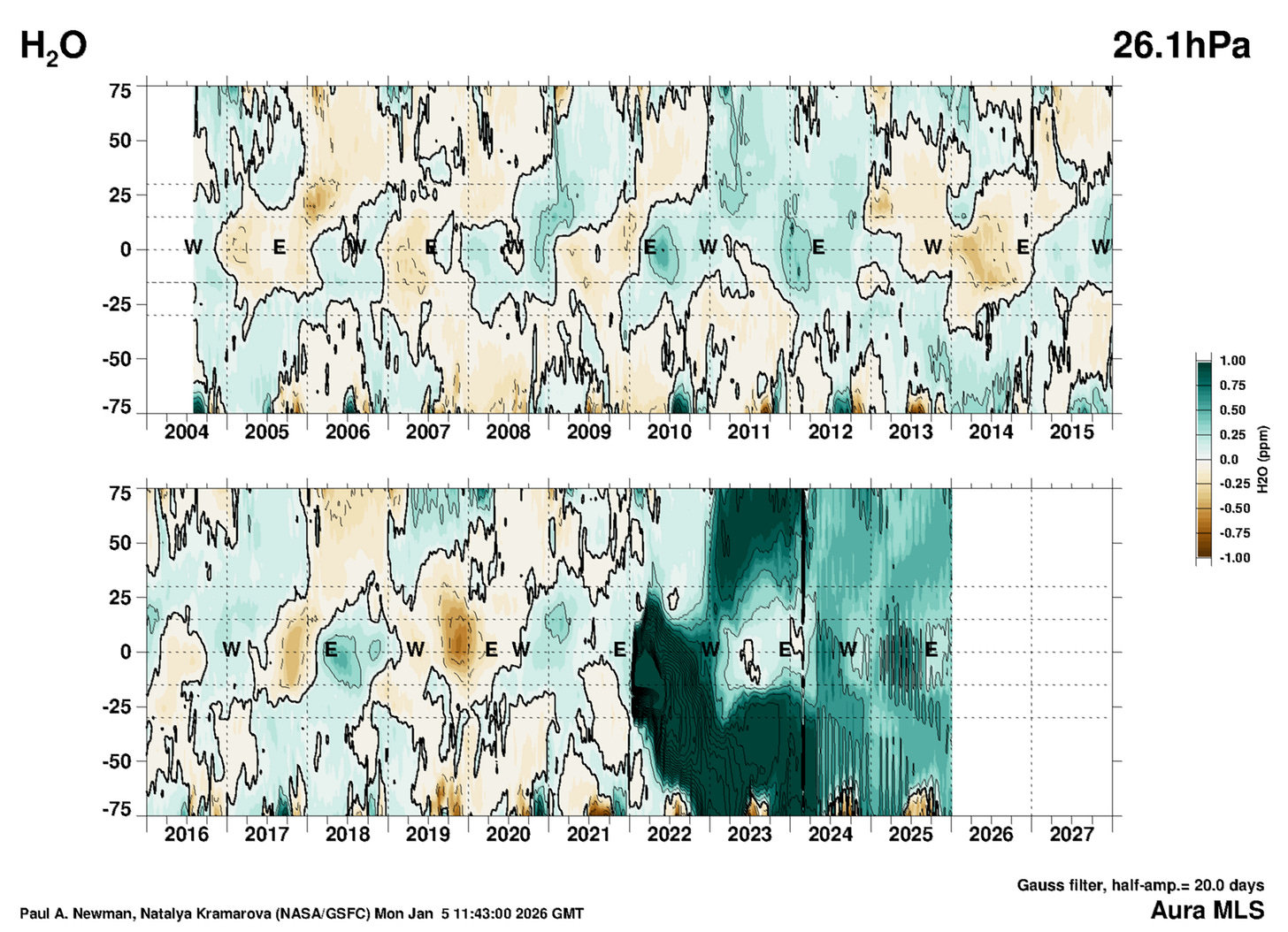 They now show clear (and expected) cooling following the 2022 eruption of Hunga Tonga — a massive submarine explosion which injected an unprecedented volume of water vapor into the atmosphere that still lingers today (though waning).
