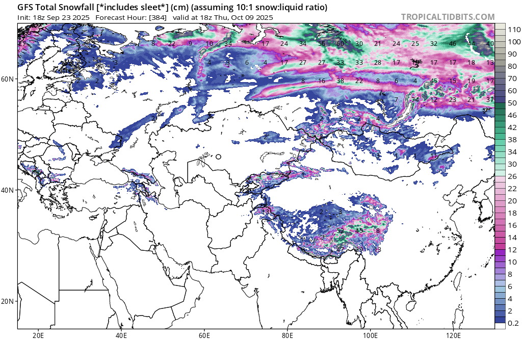 With Siberia already locking in exceptional early snow cover (map below), northern and central Asia appears primed for another brutal winter — one expected to spill west into Europe.