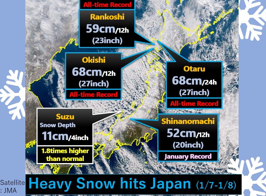 Swaths of Japan are dealing with heavy, record-breaking snowfall.