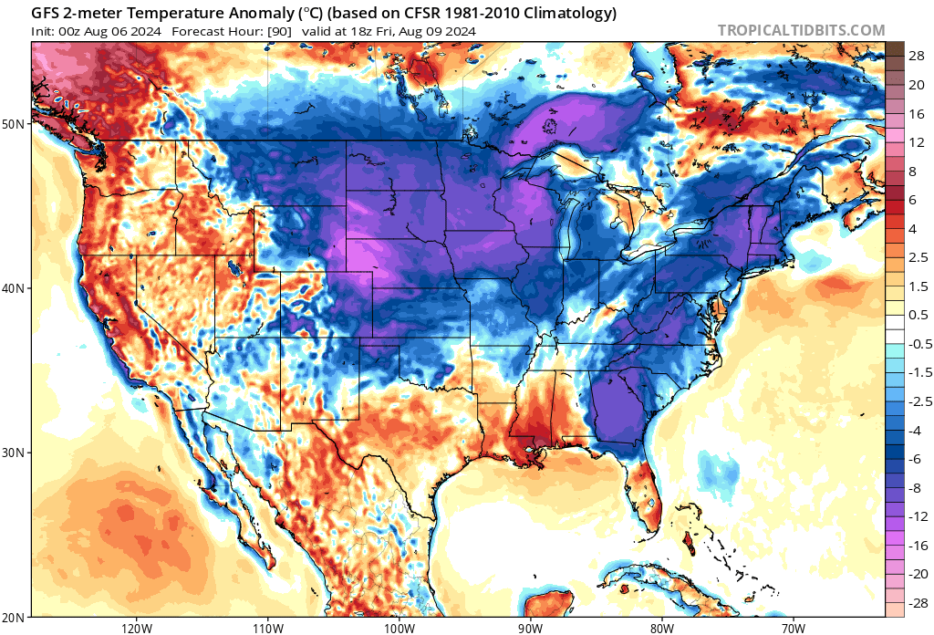 The cold wave will start today (Tuesday) for northern states, for the likes of Montana, and will have engulfed much of the CONUS by Friday.